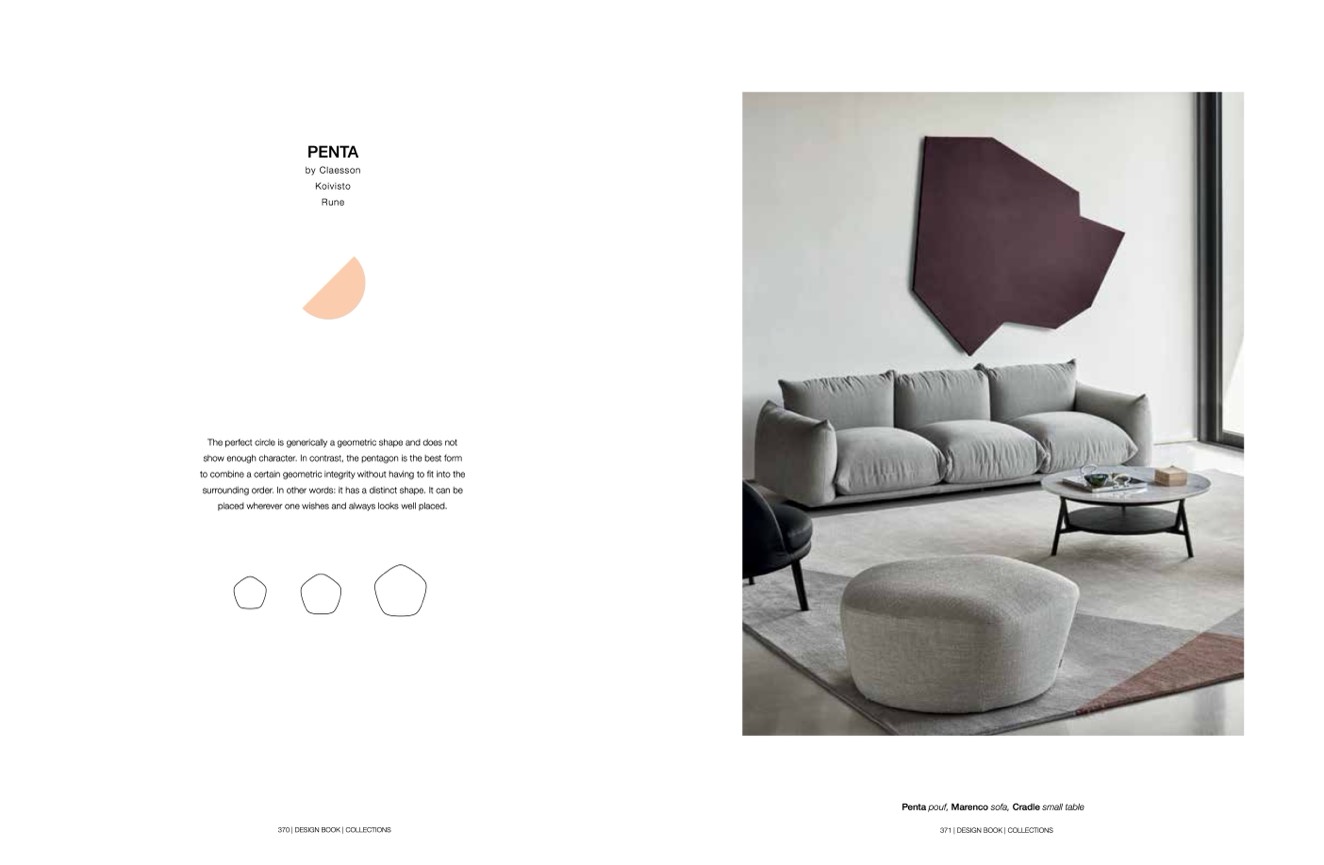 Penta pouf, Marenco sofa, Cradle small table