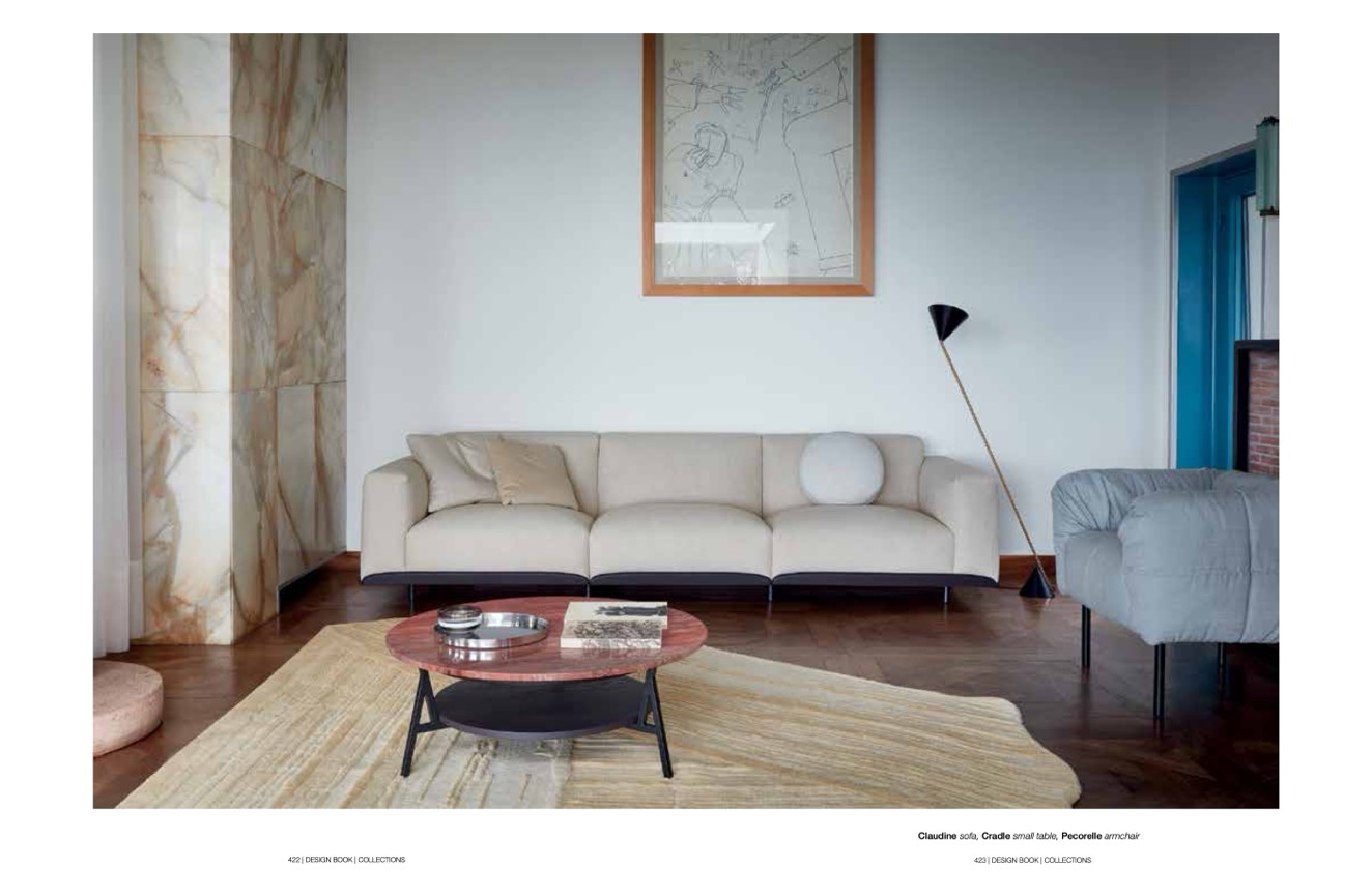 Claudine sofa, Cradle small table, Pecorelle armchair