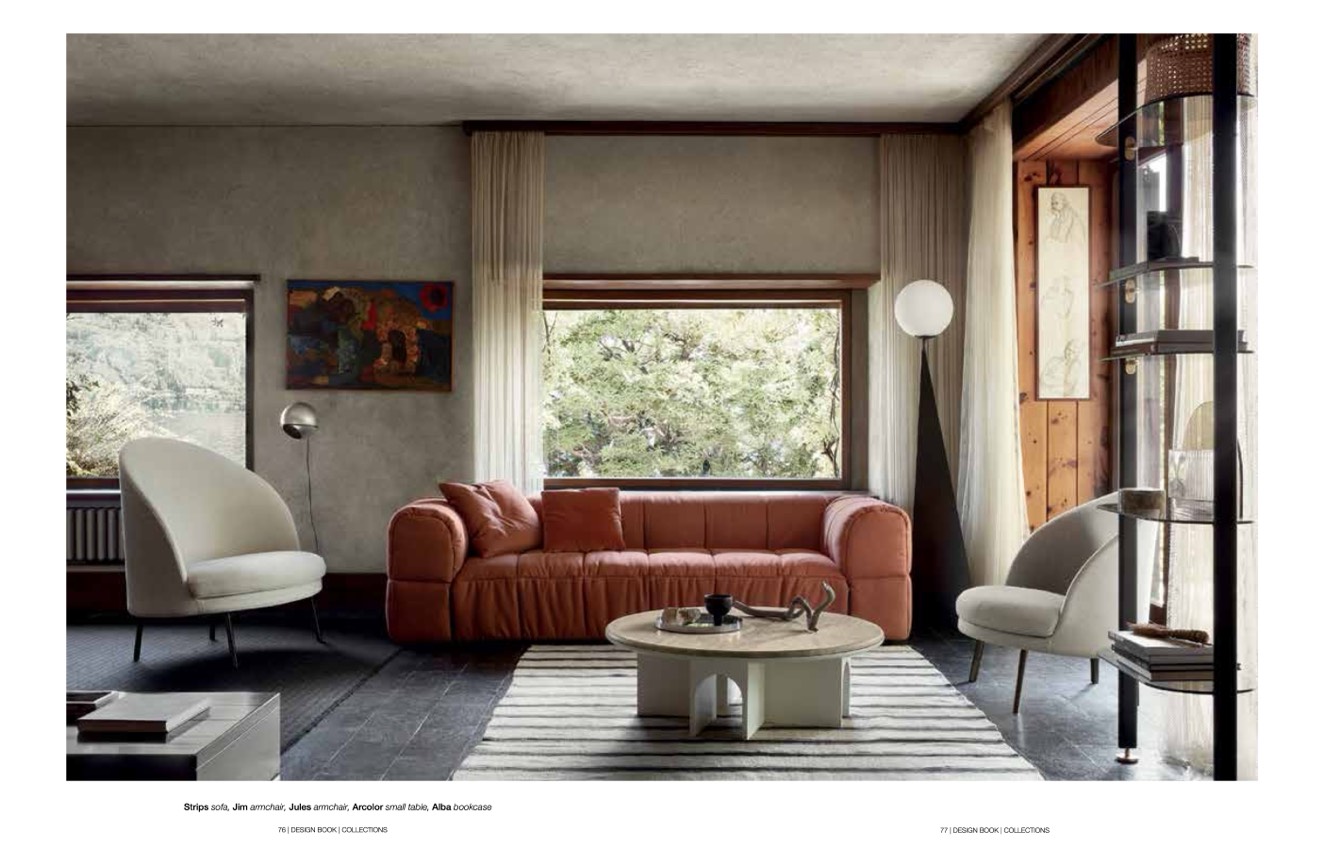 Strips sofa, Jim armchair, Jules armchair, Arcolor small table, Alba bookcase