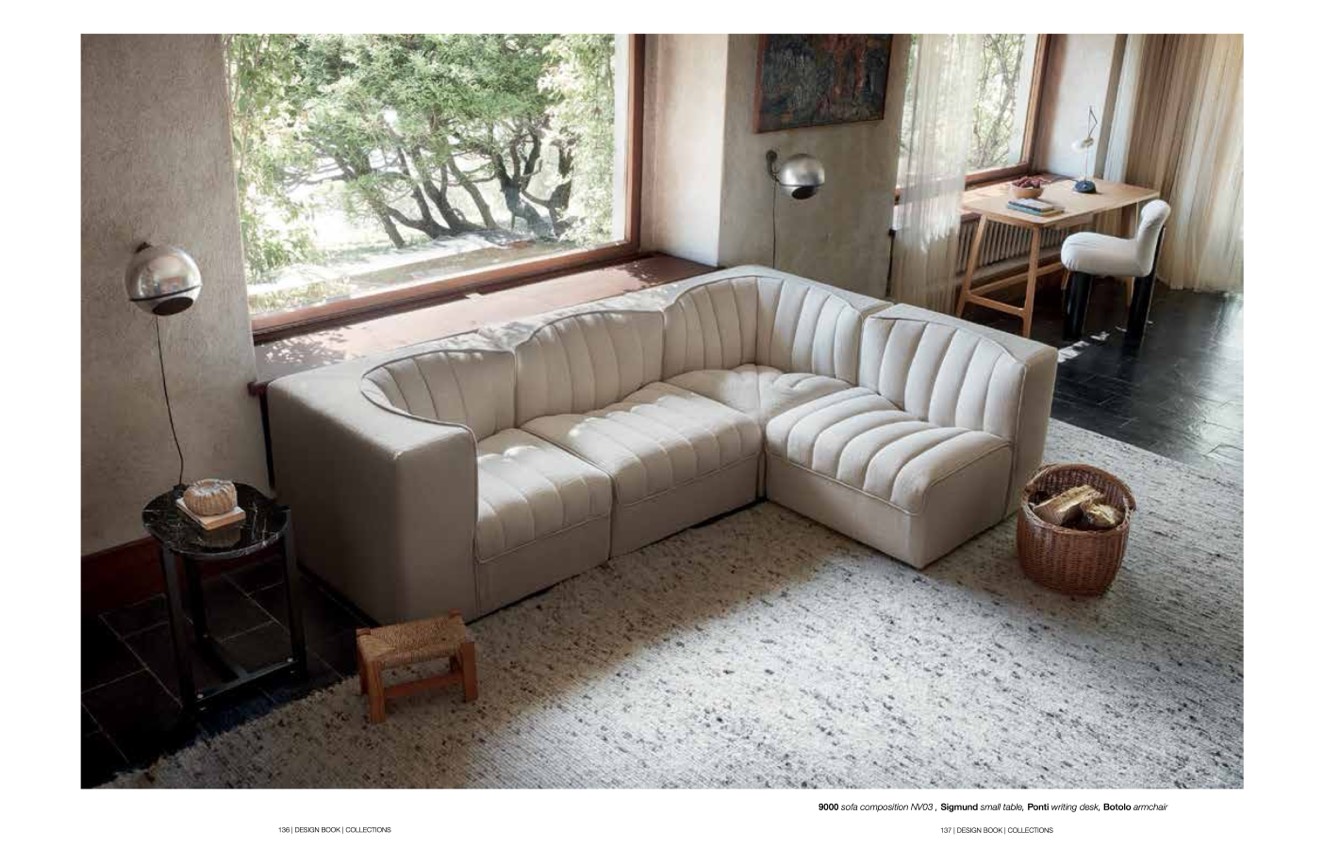 9000 sofa composition NV03 , Sigmund small table, Ponti writing desk, Botolo armchair
