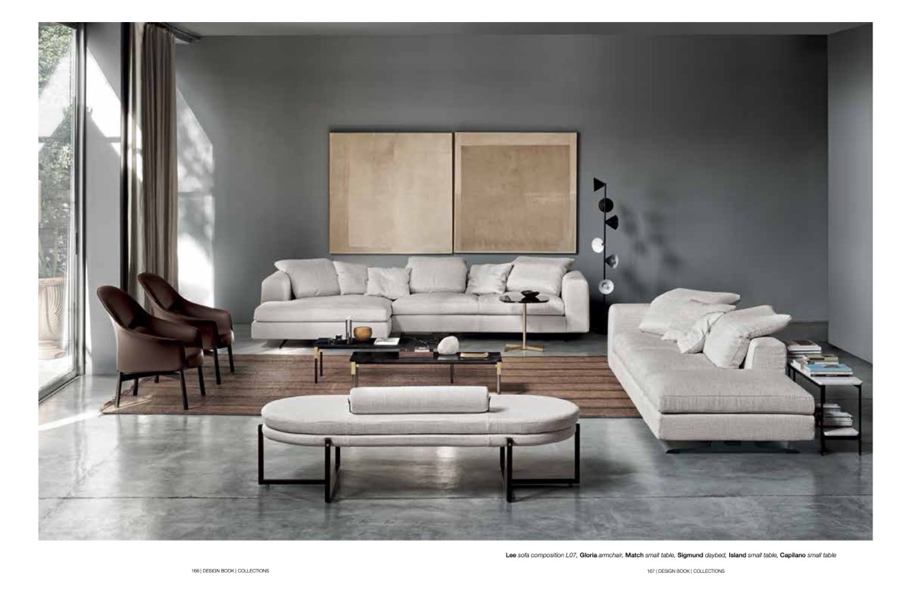 Lee sofa composition L07, Gloria armchair, Match small table, Sigmund daybed, Island small table, Capilano small table