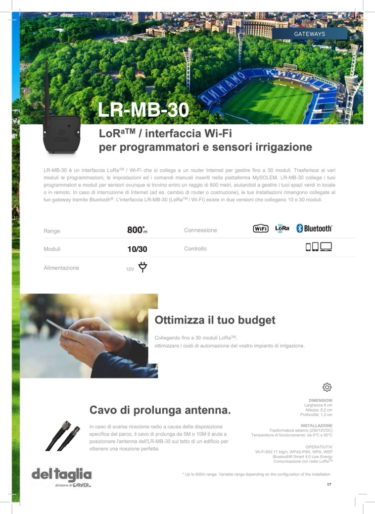 moduli le programmazioni, le impostazioni ed i comandi manuali inseriti nella piattaforma MySOLEM. LR-MB-30 collega i tuoi