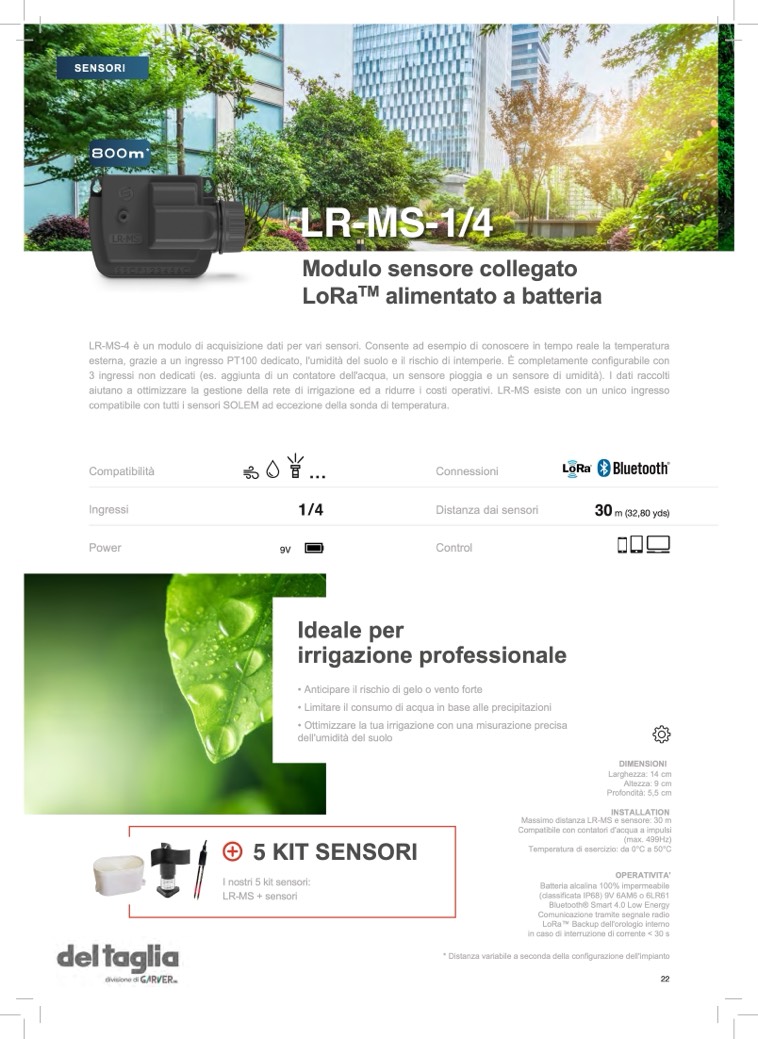 aiutano a ottimizzare la gestione della rete di irrigazione ed a ridurre i costi operativi. LR-MS esiste con un unico ingresso