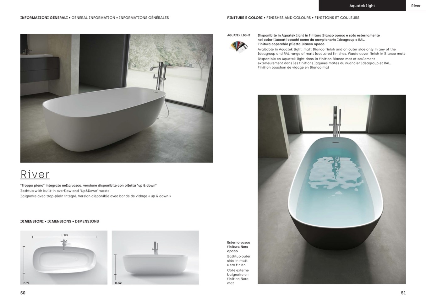 Disponibile in Aquatek light in finitura Bianco opaco e solo esternamente