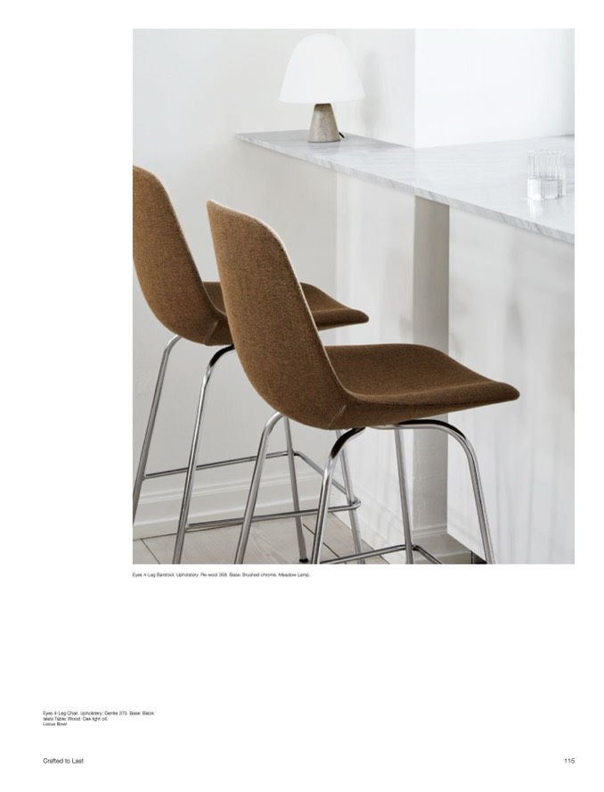 Eyes 4-Leg Barstool. Upholstery: Re-wool 358. Base: Brushed chrome. Meadow Lamp.