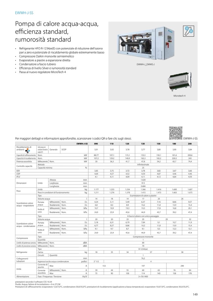 ffrescamento: evaporatore 12,0/7,0°C, condensatore 30,0/35,0°C; prestazioni di riscaldamento (applicazione a bassa temperatura): evaporatore 10,0/7,0°C, condensatore 30,0/35,0°C.