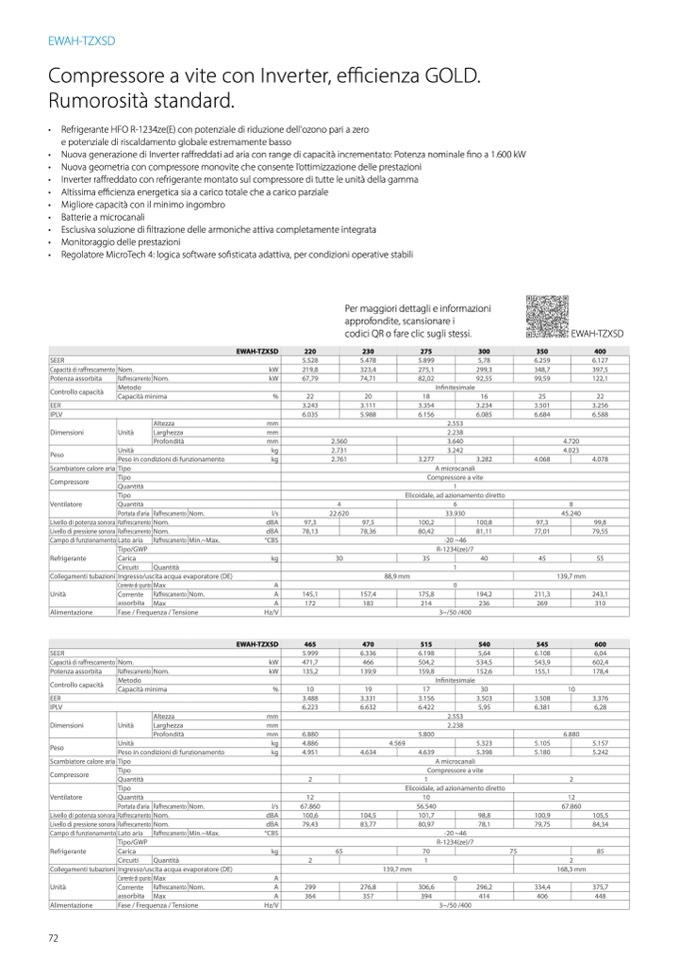 • Inverter raffreddato con refrigerante montato sul compressore di tutte le unità della gamma