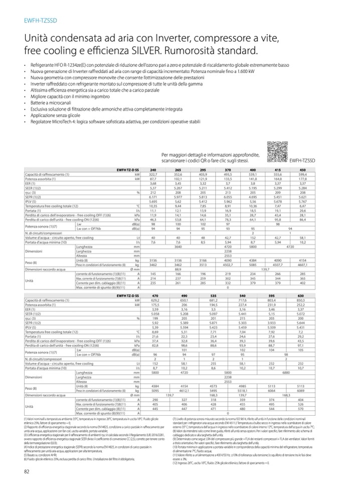 (12) Ingresso 26°C, uscita 18°C, fluido: 25% glicole etilenico, fattore di sporcamento = 0.