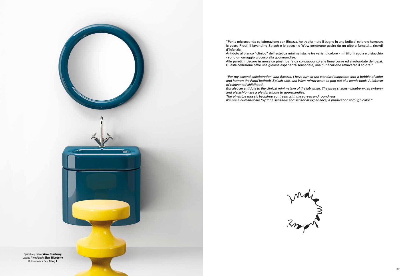 la vasca Plouf, il lavandino Splash e lo specchio Wow sembrano uscire da un albo a fumetti... ricordi
