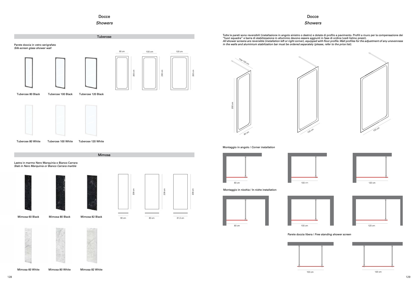Parete doccia libera / Free standing shower screen