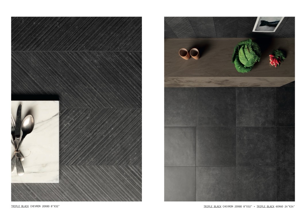 TRIPLE BLACK CHEVRON 20X80 8”X32” + TRIPLE BLACK 60X60 24”X24”