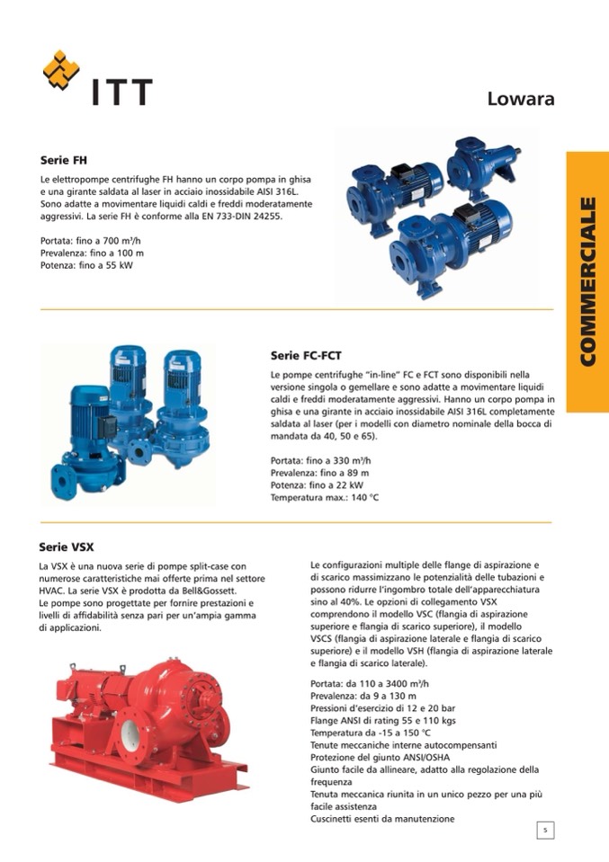 Le pompe centrifughe “in-line” FC e FCT sono disponibili nella