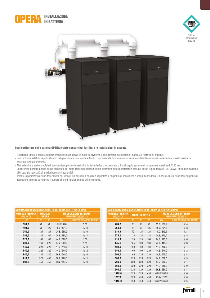 - Abbinata ad una serie completa di accessori per più combinazioni in batteria da due o tre generatori, fino al raggiungimento di una potenza massima di 1350 kW.