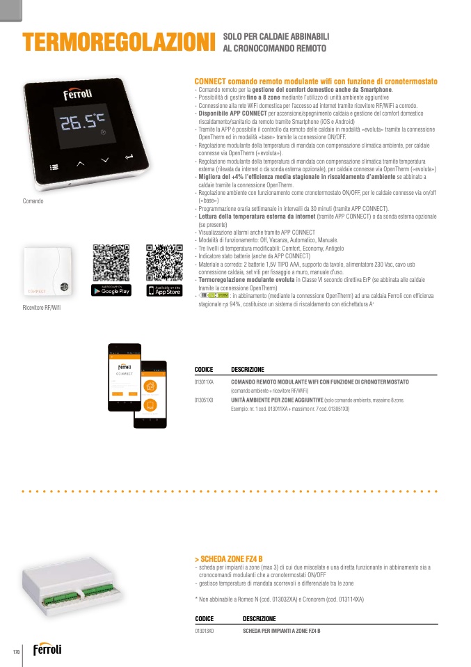 : in abbinamento (mediante la connessione OpenTherm) ad una caldaia Ferroli con ef