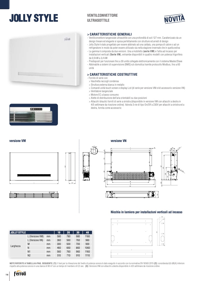 - Ventilconvettore tangenziale ultrasottile con una profondit
