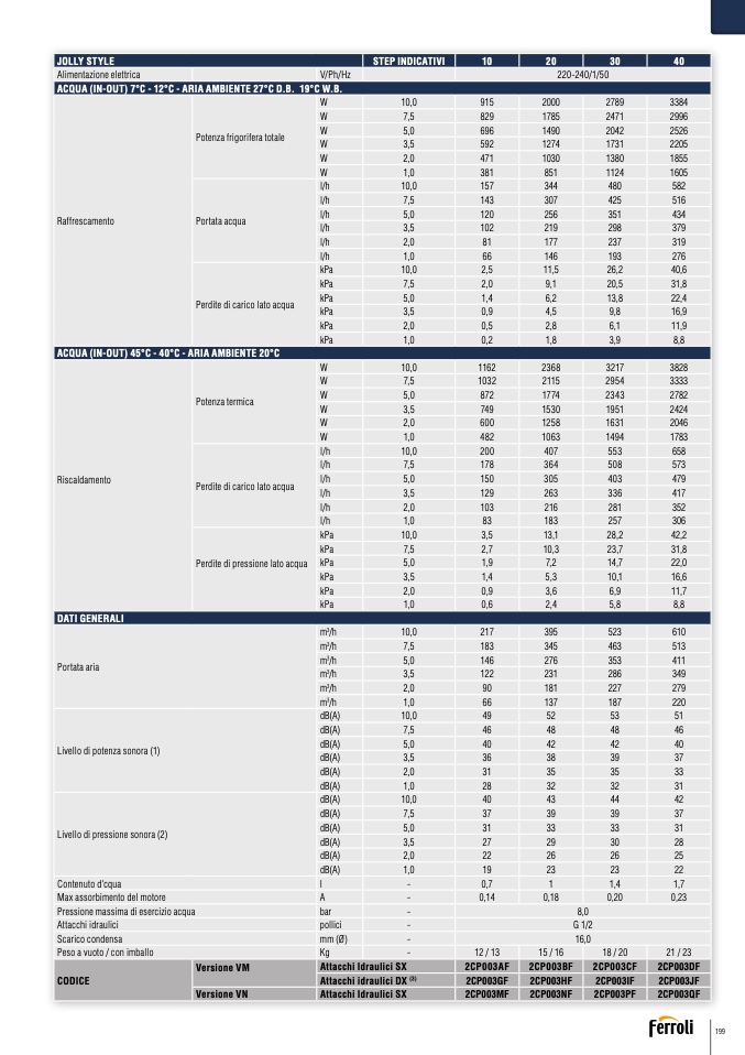ACQUA (IN-OUT) 7°C - 12°C - ARIA AMBIENTE 27°C D.B. 19°C W.B.