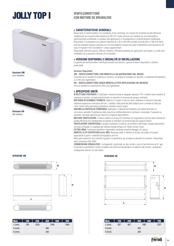 Nuova serie di ventilconvettori con ventilatore di tipo centrifugo con motore DC brushless ad alta efficienza.