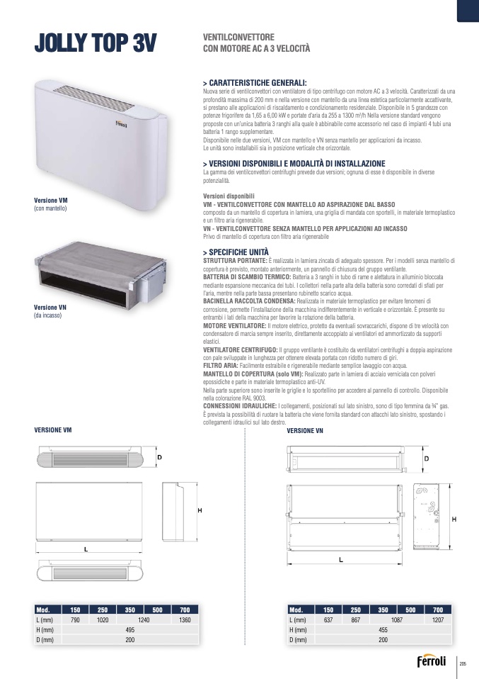 Nuova serie di ventilconvettori con ventilatore di tipo centrifugo con motore AC a 3 velocità. Caratterizzati da una