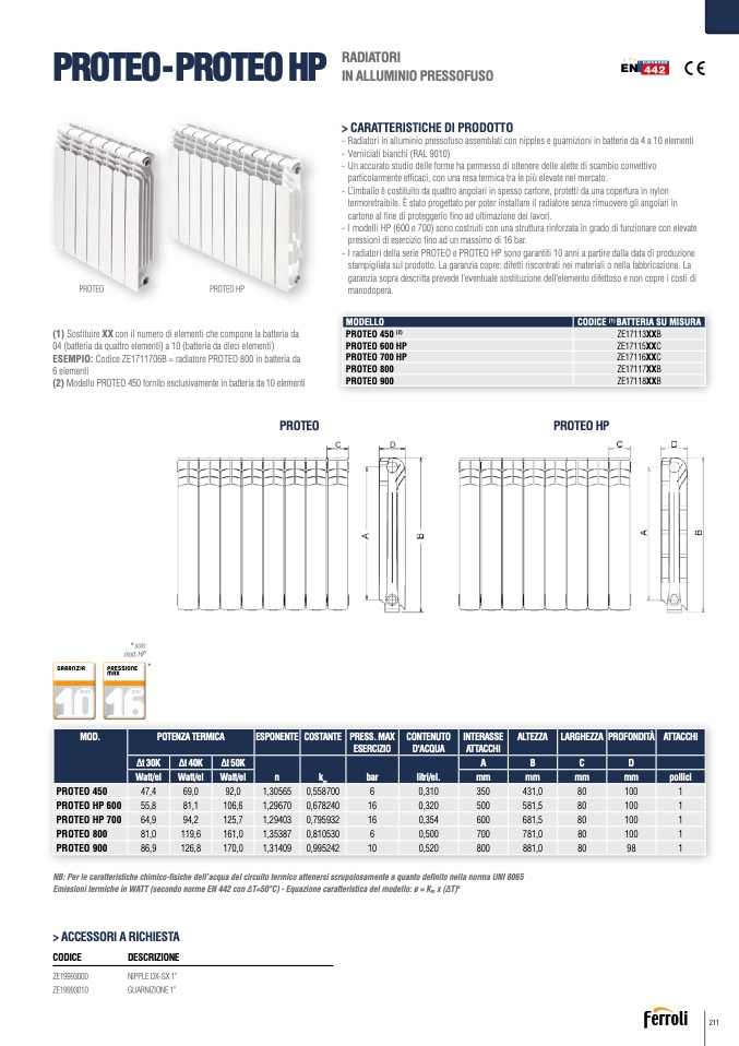ESEMPIO: Codice ZE1711706B = radiatore PROTEO 800 in batteria da