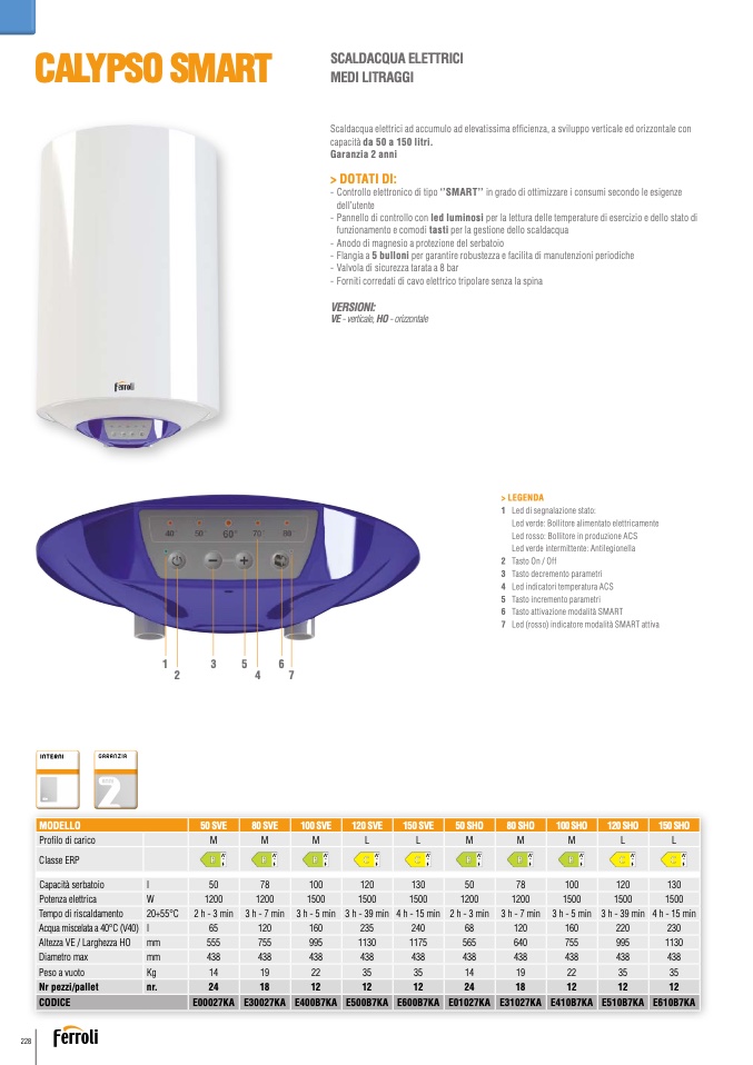 - Controllo elettronico di tipo ‘’SMART’’ in grado di ottimizzare i consumi secondo le esigenze