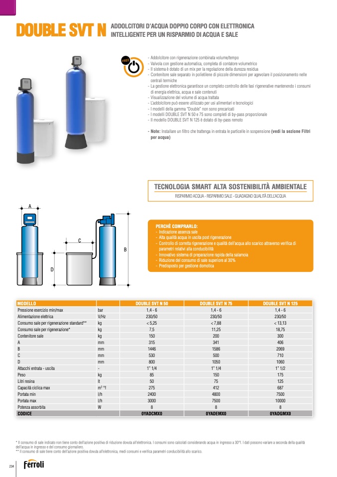 * Il consumo di sale indicato non tiene conto dell’azione positiva di riduzione dovuta all’elettronica. I consumi sono calcolati considerando acqua in ingresso a 30°f. I dati possono variare a seconda della qualit