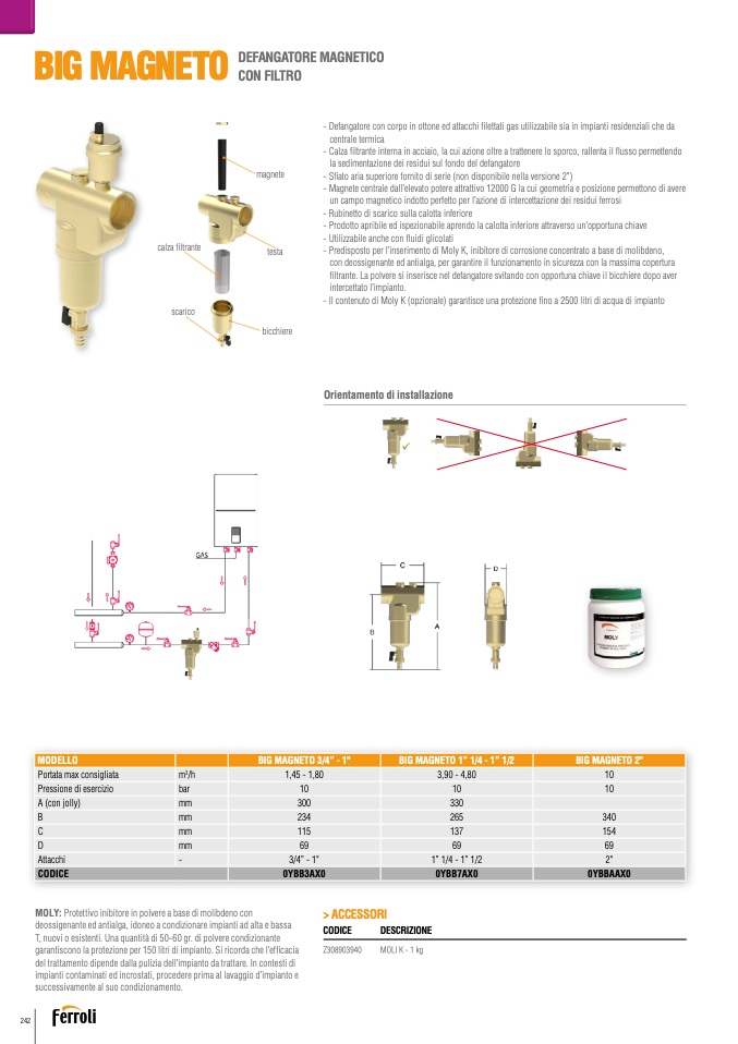 - Predisposto per l’inserimento di Moly K, inibitore di corrosione concentrato a base di molibdeno,