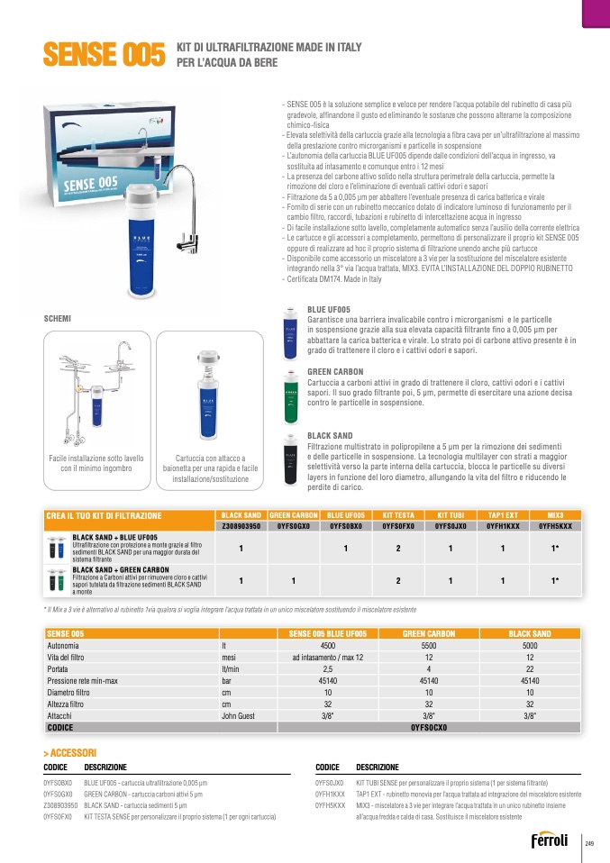- Le cartucce e gli accessori a completamento, permettono di personalizzare il proprio kit SENSE 005
