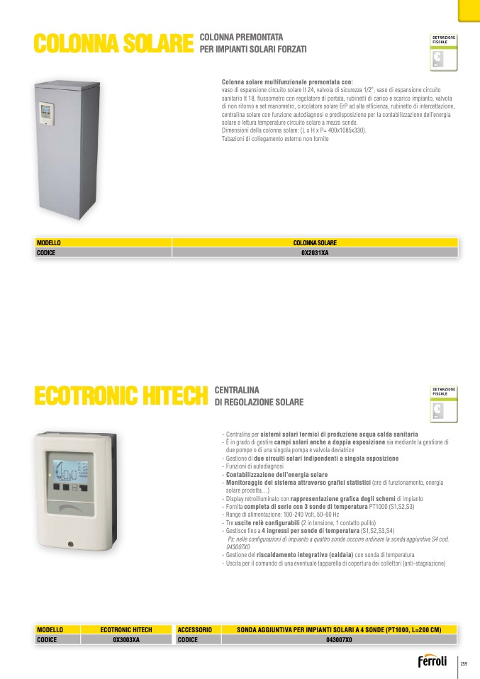 - Gestione di due circuiti solari indipendenti a singola esposizione