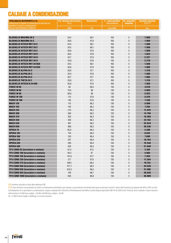 (**): Sono ammessi solo generatori di calore a condensazione alimentati a gas naturale. La percentuale incentivata della spesa sostenuta (e quindi il valore dell’incentivo) pu