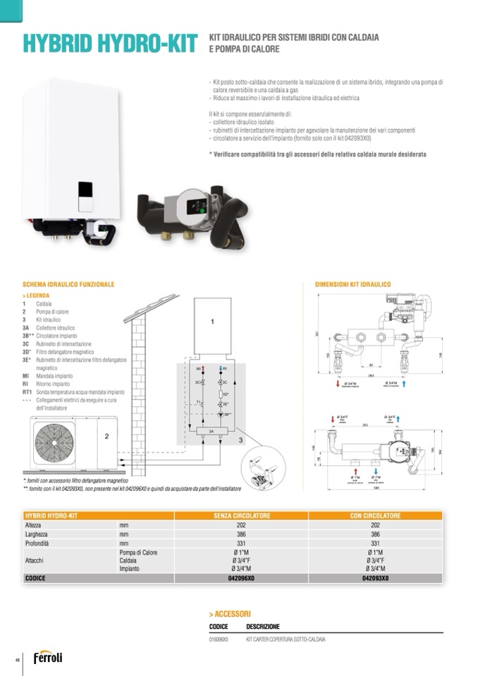 - Kit posto sotto-caldaia che consente la realizzazione di un sistema ibrido, integrando una pompa di