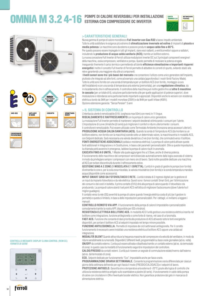 energetici. Inoltre il concetto Full Inverter di Ferroli permette di abbattere le correnti di spunto, evitando sbalzi alla