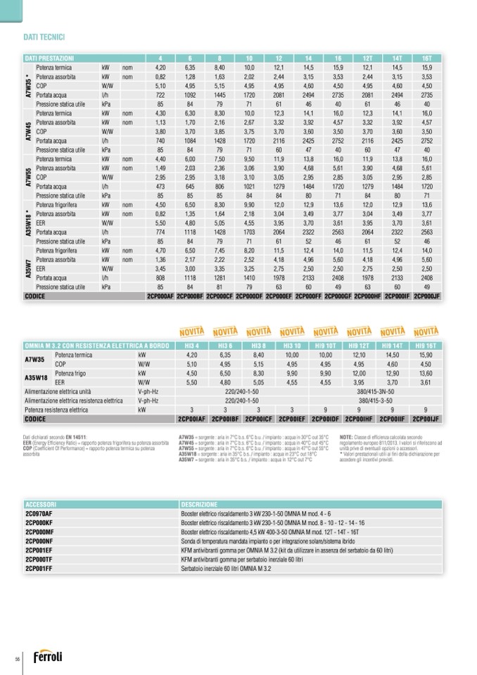 A7W55 = sorgente : aria in 7°C b.s. 6°C b.u. / impianto : acqua in 47°C out 55°C