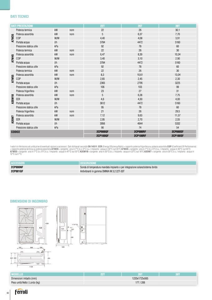 = rapporto potenza termica su potenza assorbita A7W35 = sorgente : aria in 7°C b.s. 6°C b.u. / impianto : acqua in 30°C out 35°C A7W45 = sorgente : aria in 7°C b.s. 6°C b.u. / impianto : acqua in 40°C out 45°C