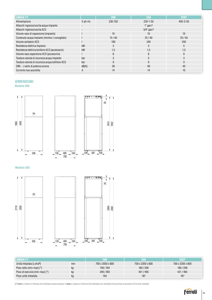 à base senza accessori / max = il peso si riferisce all'unità base con serbatoio di accumulo e accessori kit 2 zone installati