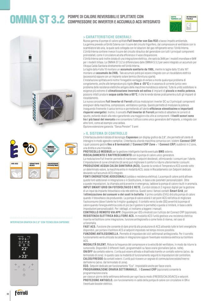 risparmi energetici. Inoltre, il concetto Full Inverter di Ferroli permette di abbattere le correnti di