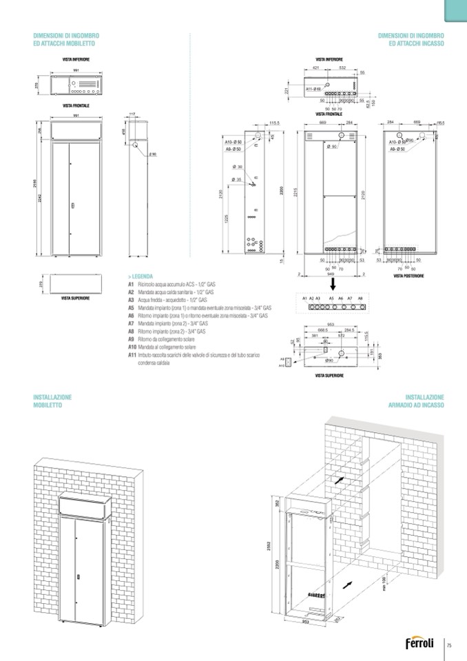 A5 Mandata impianto (zona 1) o mandata eventuale zona miscelata - 3/4” GAS