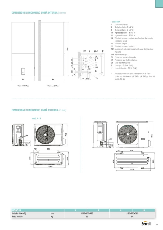 Per abbinamento con unità esterne mod. 4-6, viene