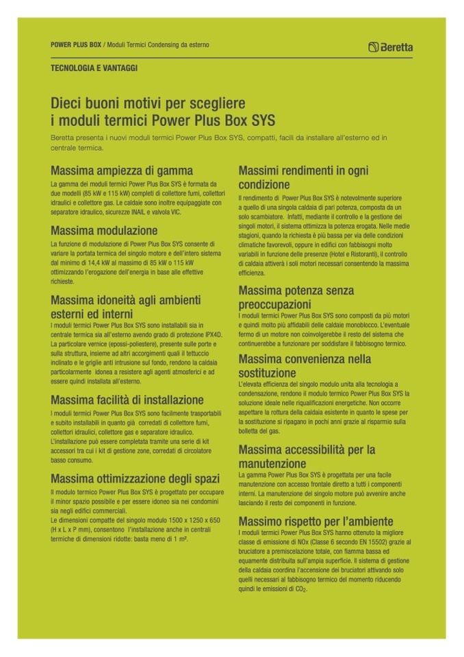 Beretta presenta i nuovi moduli termici Power Plus Box SYS, compatti, facili da installare all’esterno ed in