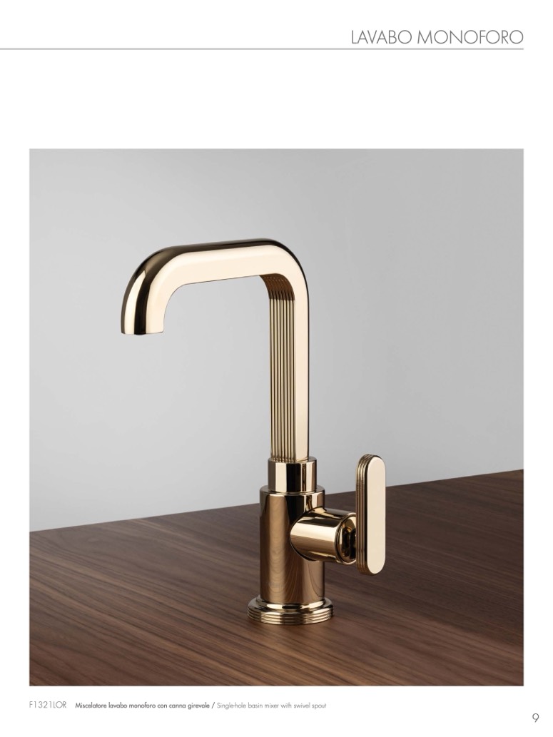 F1321LOR Miscelatore lavabo monoforo con canna girevole / Single-hole basin mixer with swivel spout