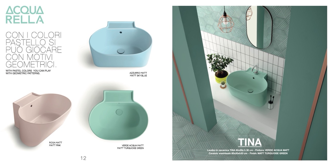 Lavabo in ceramica TINA 60x50x h 30 cm - Finitura: VERDE ACQUA MATT