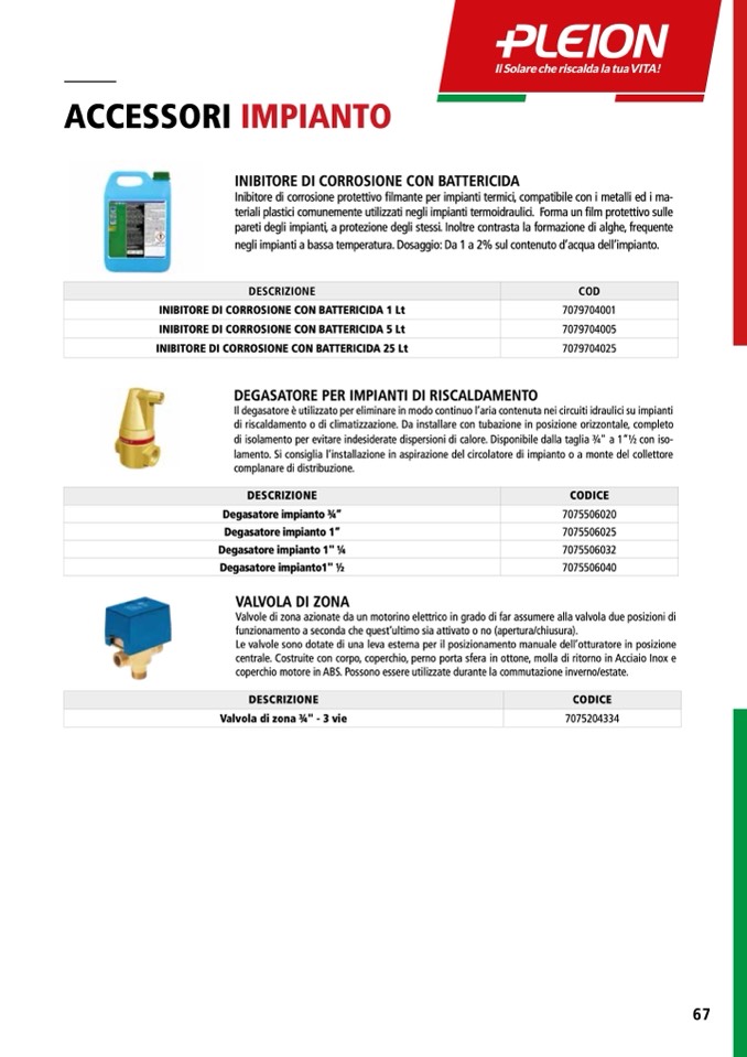 negli impianti a bassa temperatura. Dosaggio: Da 1 a 2% sul contenuto d’acqua dell’impianto.