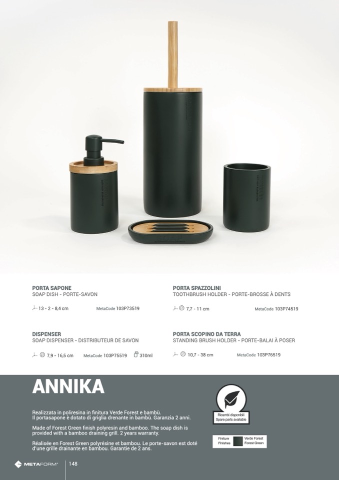 Réalisée en Forest Green polyrésine et bambou. Le porte-savon est dot