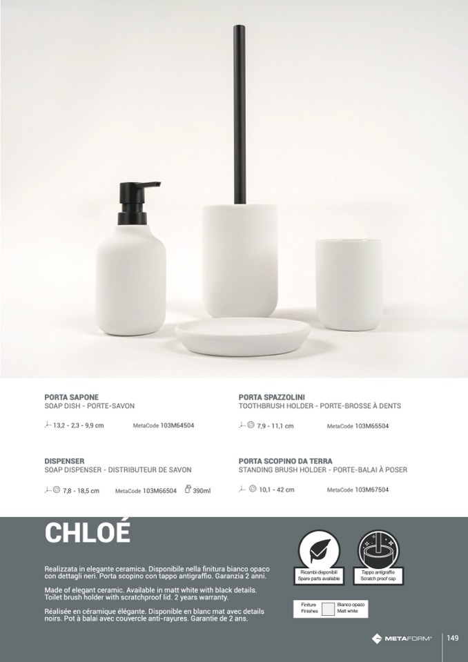 con dettagli neri. Porta scopino con tappo antigraffio. Garanzia 2 anni.