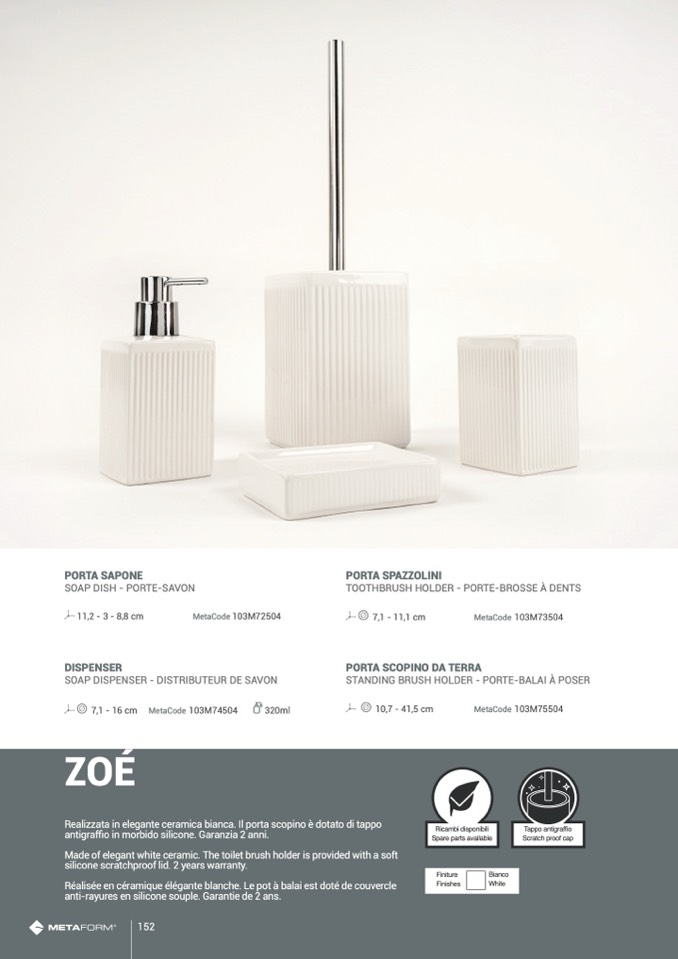 Realizzata in elegante ceramica bianca. Il porta scopino è dotato di tappo