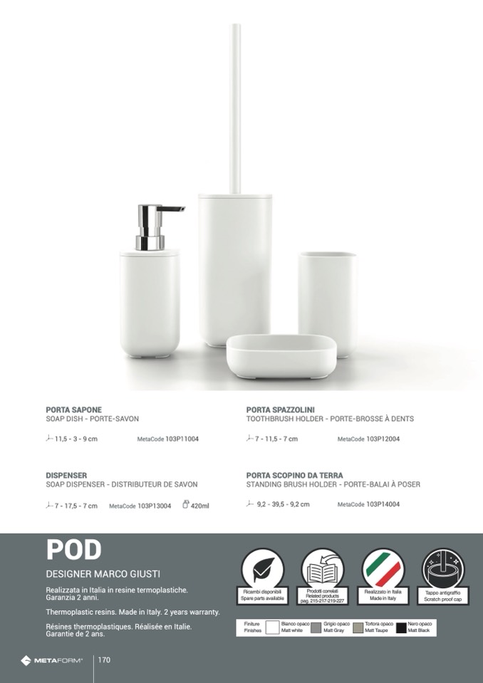Thermoplastic resins. Made in Italy. 2 years warranty.