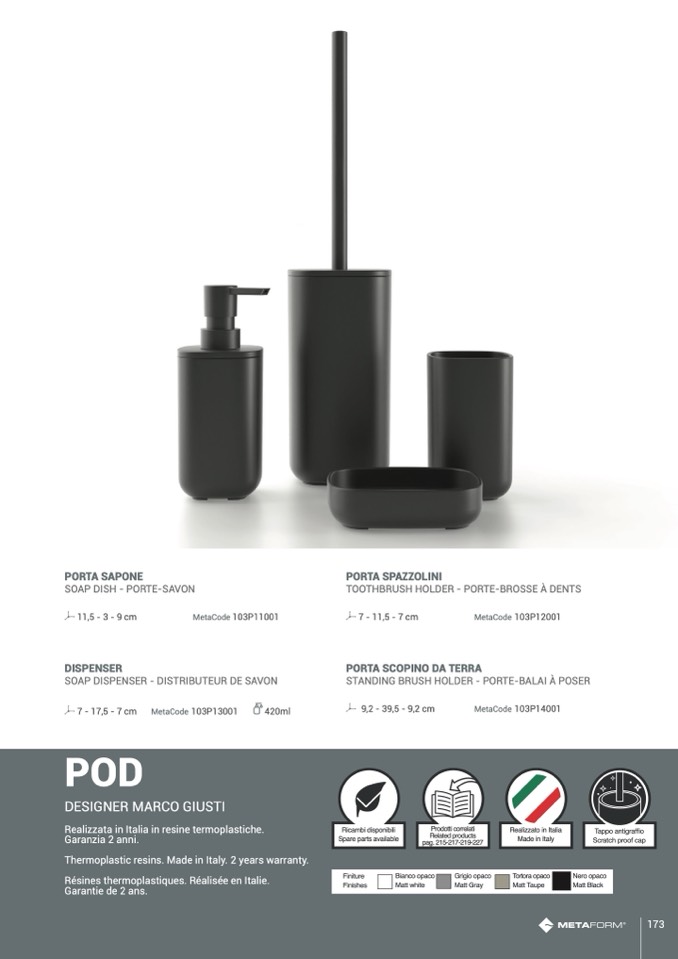 Realizzata in Italia in resine termoplastiche.