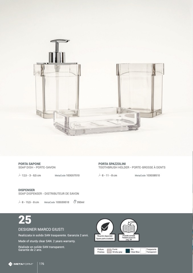 Realizzata in solido SAN trasparente. Garanzia 2 anni.