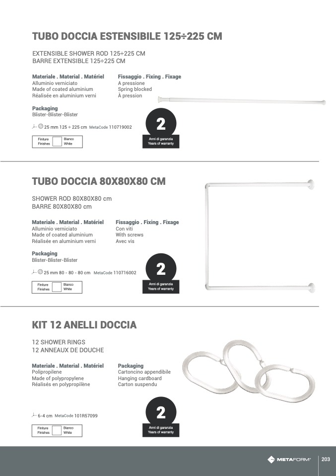 25 mm 125 ÷ 225 cm MetaCode 110719002