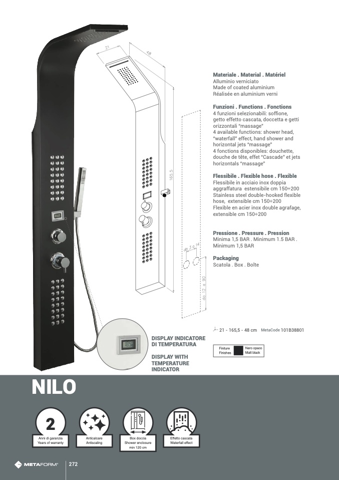 4 funzioni selezionabili: soffione,