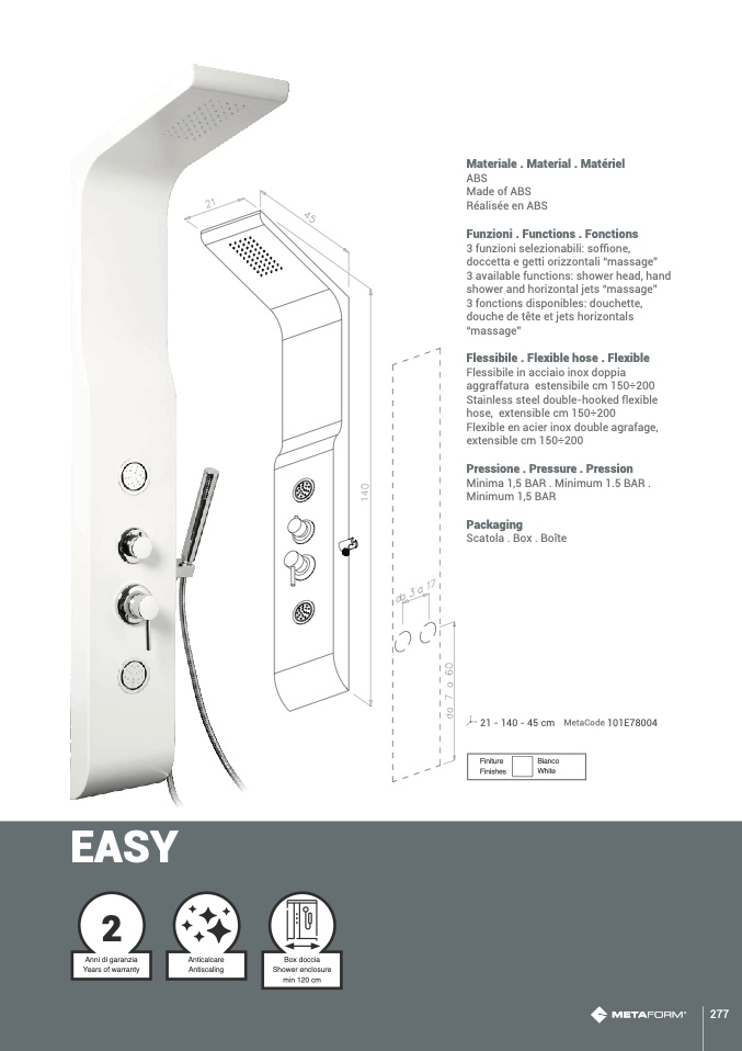 3 funzioni selezionabili: soffione,